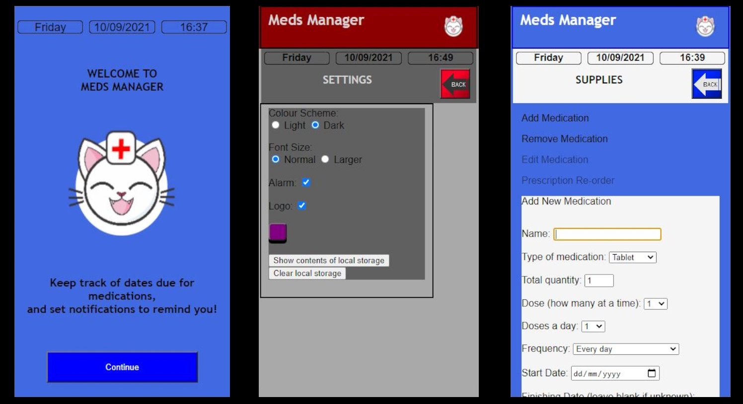 I planned, designed, and eventually developed such a mobile app for medication management using HTML, CSS, JavaScript and the Apache Cordova development framework for cross-platform development.